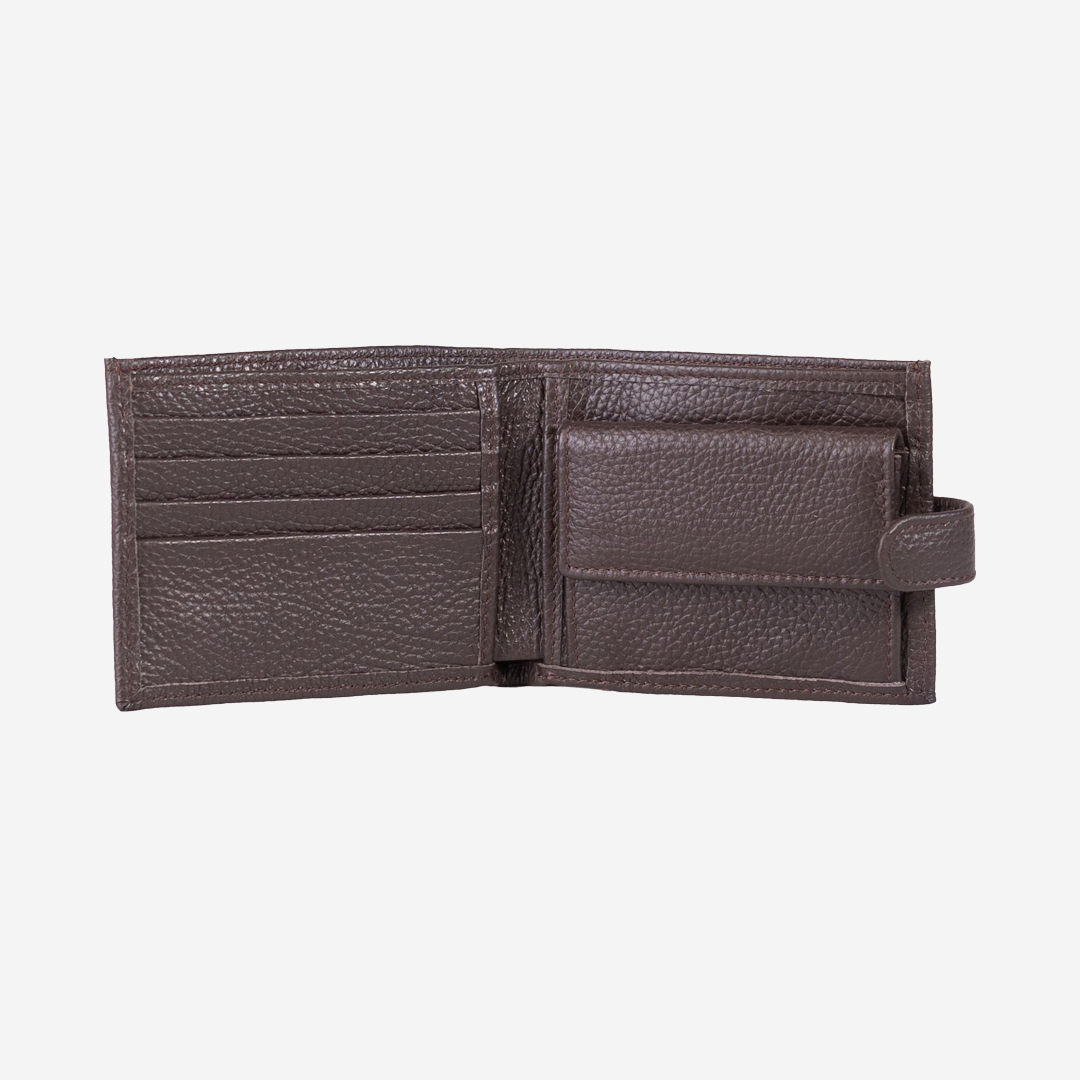 Sportski muški novčanik je izrađen od kvalitetne prirodne kože, u braon boji. Ima dve velike pregrade za novac, pregrade za kartice i lična dokumenta, kao i džep za sitan novac. Spoljni izgled novčanika je upotpunjen metalnom pločicom Falco.