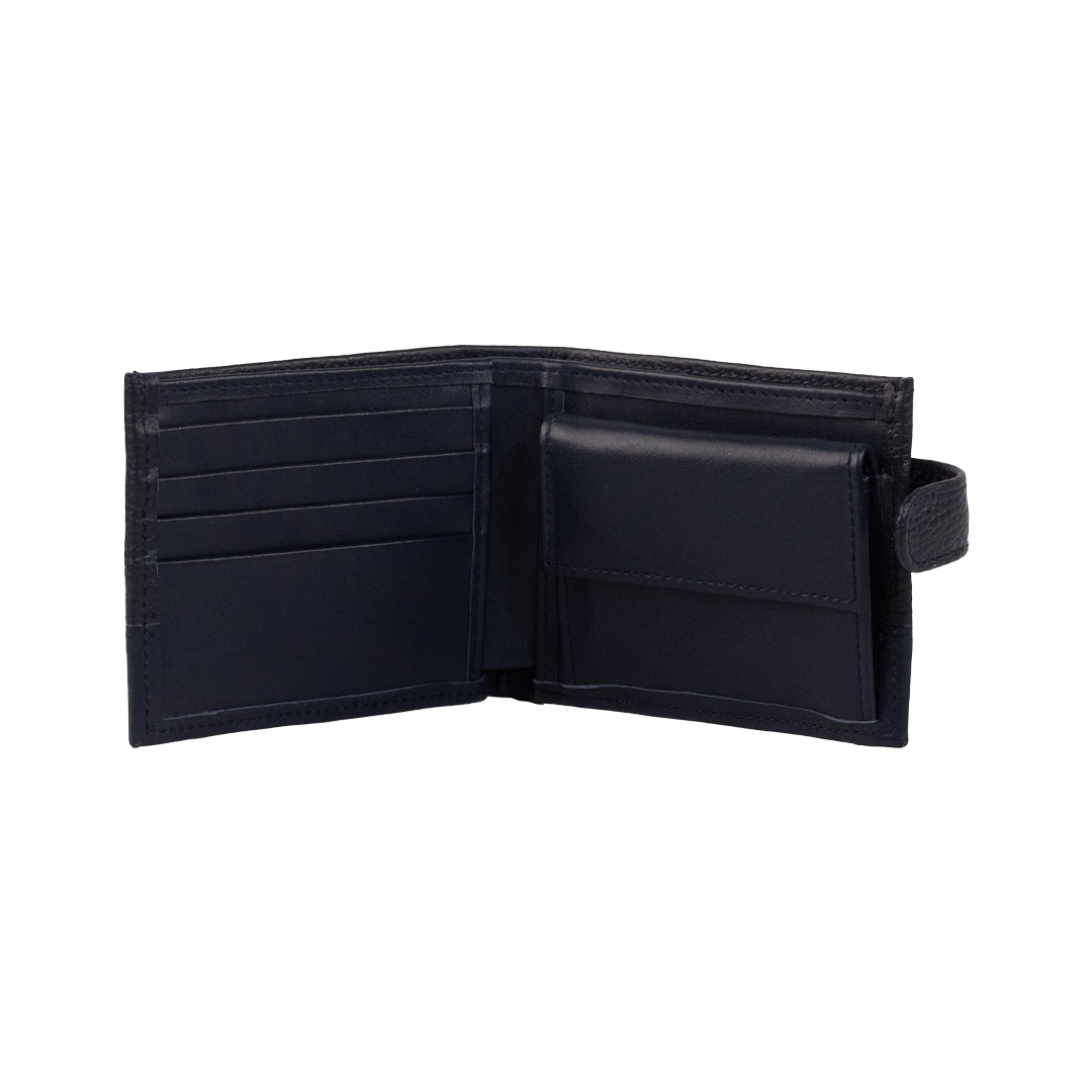 Muški novčanik iz sportske kolekcije je izrađen od kvalitetne prirodne kože, u teget boji. Ima dve velike pregrade za novac, pregrade za kartice i lična dokumenta, džep za sitan novac kao i spoljno kopčanje. Izgled novčanika je upotpunjen metalnom pločicom Falco.