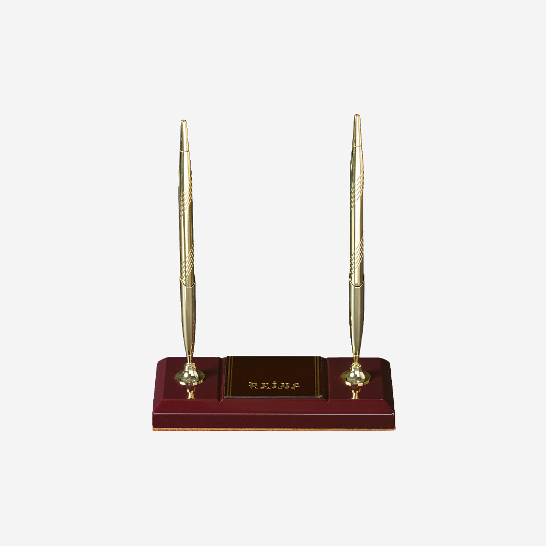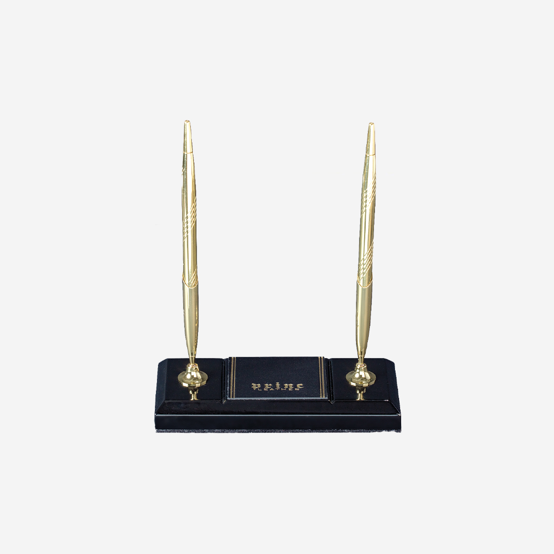 Sa donje strane, artikal je obložen mekanom čojom, koja štiti radnu površinu od grebanja i istovremeno sprečava klizanje. Set sadrži dva metalna stalka sa hemijskom olovkom i naliv-perom, izrađenim u modernoj zlatnoj boji, koji dodatno naglašavaju eleganciju celokupnog dizajna.
