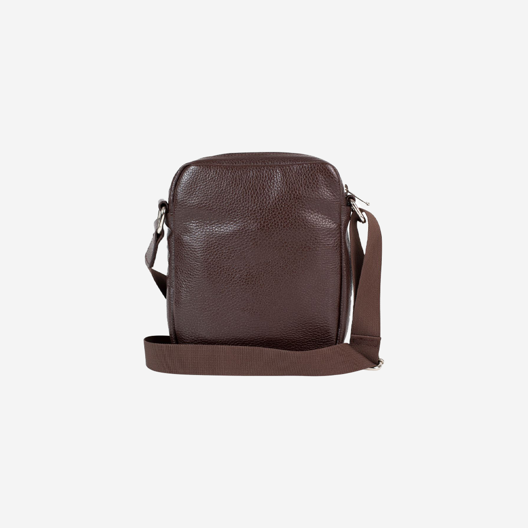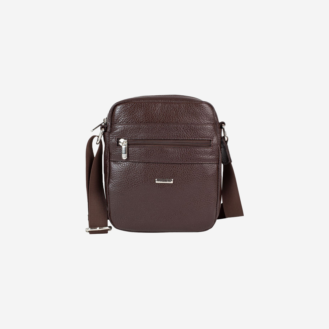 Klasična muška torbica izrađena od kvalitetne prirodne kože u braon boji. Ima praktičnu unutrašnjost sa dva komotna džepa. Sa spoljne strane ima džep sa cipom i dugački podesivi grif.. Izgled torbice je upotpunjen metalnom pločicom Falco.