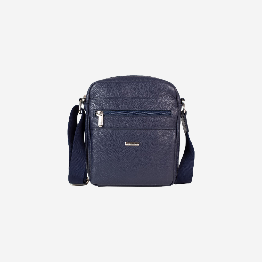 Klasična muška torbica izrađena od kvalitetne prirodne kože u teget boji. Ima praktičnu unutrašnjost sa dva komotna džepa. Sa spoljne strane ima džep sa cipom i dugački podesivi grif. Izgled torbice je upotpunjen metalnom pločicom Falco.