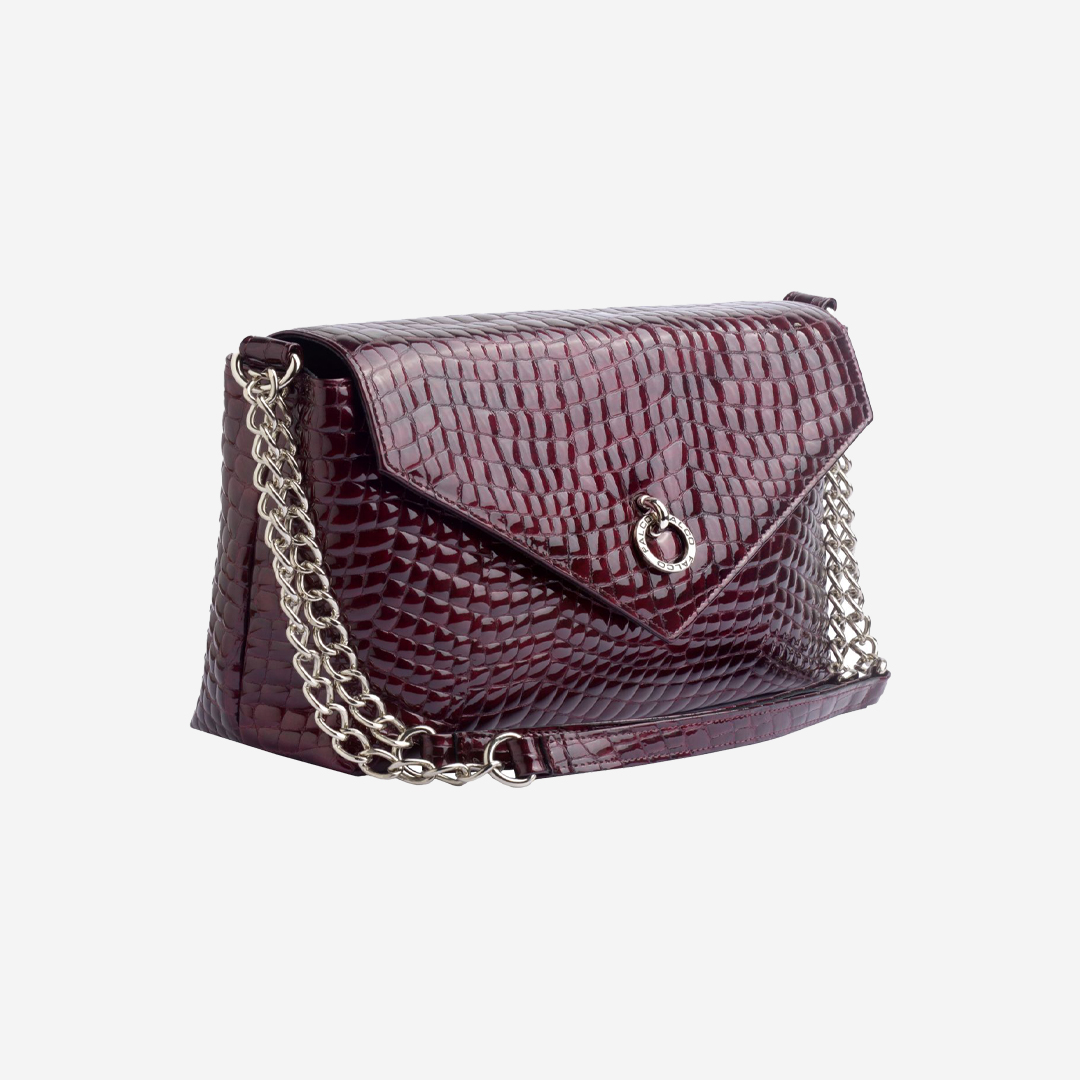 Trendy ženska tašna izrađena od kvalitetne prirodne kože. Unutrašnjost je veoma je praktična sa velikom pregradom i džepom. Ima dugačak metalni lanac sa kožnim dodatkom za ugodno nošenje. Lanac je podesiv na dve veličine. Izgled tašne je upotpunjen metalnom brendiranom alkom Falco.