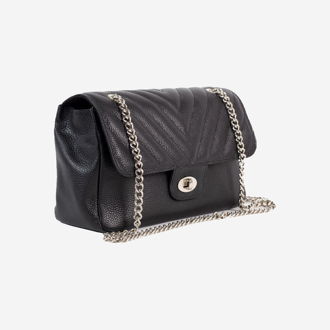 Trendy ženska tašna izrađena od kvalitetne prirodne kože. Unutrašnjost je veoma je praktična i komotna, sa odvojenim džepom. Ima dugačak metalni lanac a izgled tašne je upotpunjen metalnom bravicom i pločicom Falco.