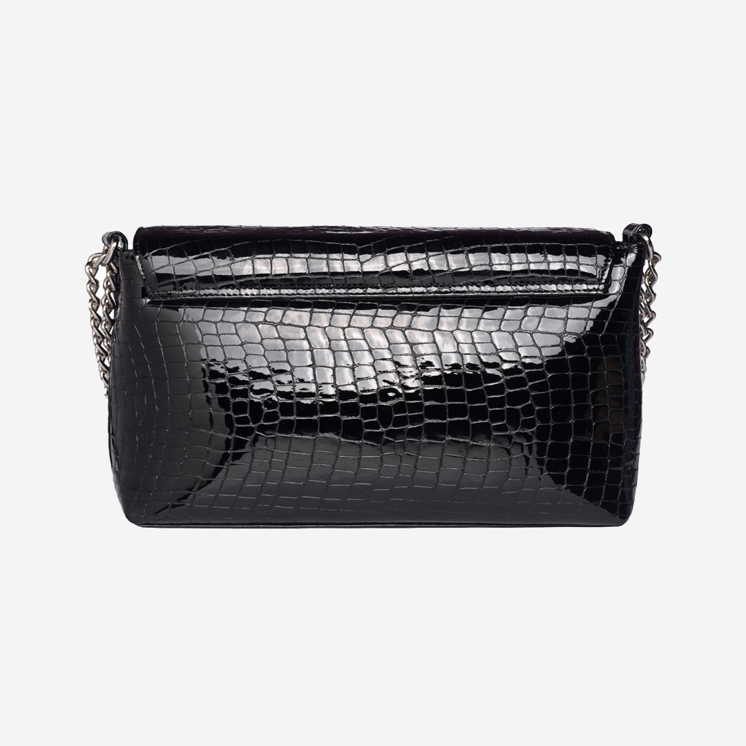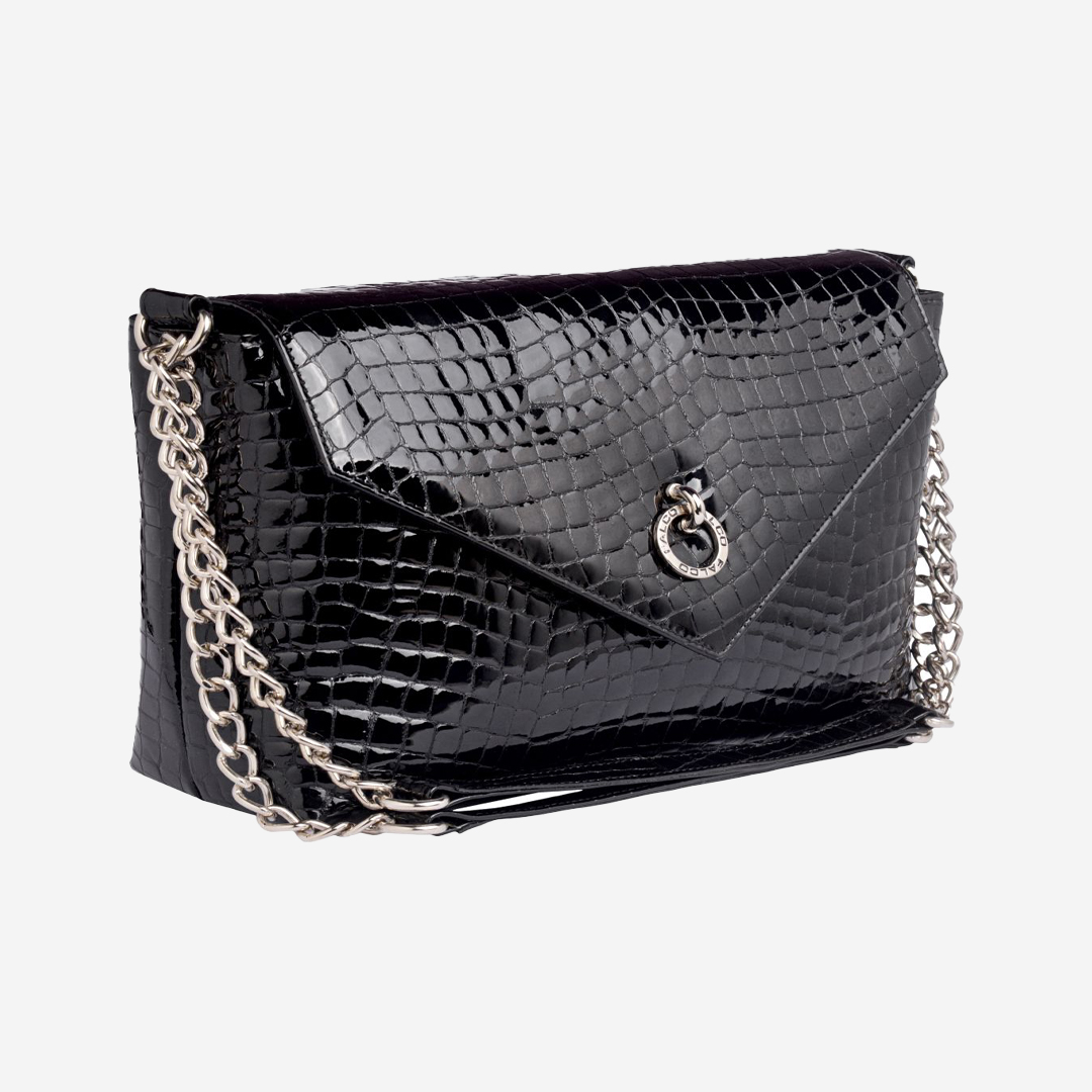 Trendy ženska tašna izrađena od kvalitetne prirodne kože. Unutrašnjost je veoma je praktična sa velikom pregradom i džepom. Ima dugačak metalni lanac sa kožnim dodatkom za ugodno nošenje. Lanac je podesiv na dve veličine. Izgled tašne je upotpunjen metalnom brendiranom alkom Falco.