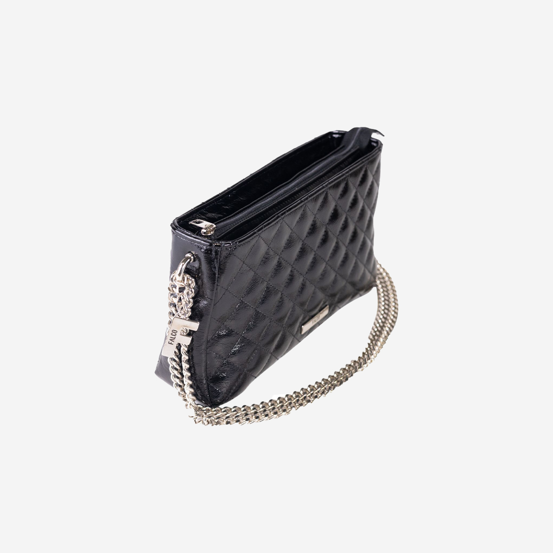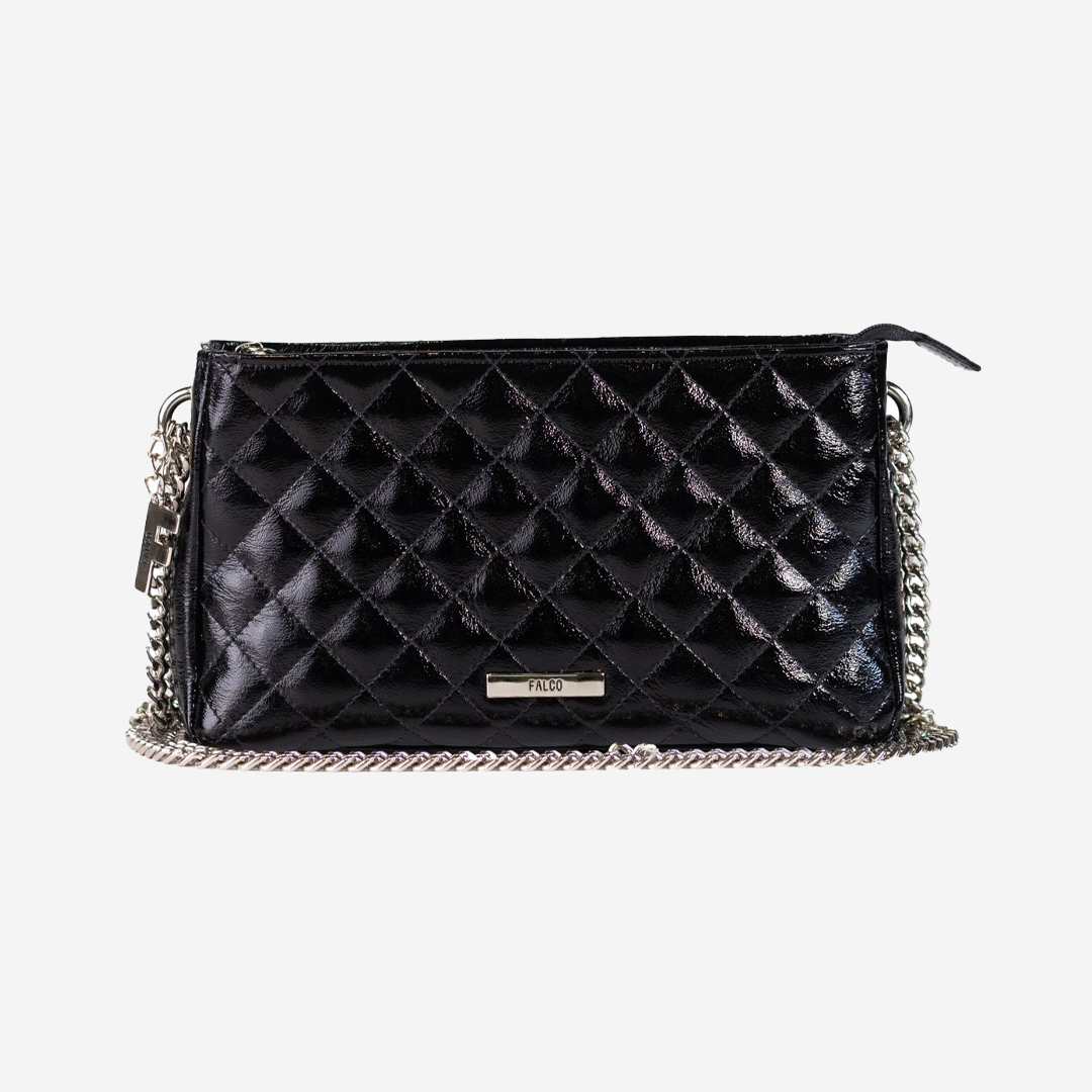 Štepana tašna izrađena od kvalitetne prirodne kože. Veoma je praktična, sa dovoljno mesta za najosnovnije. Ima dugačak metalni lanac za ugodno nošenje. Izgled tašne je upotpunjen metalnom brendiranom alkom Falco.