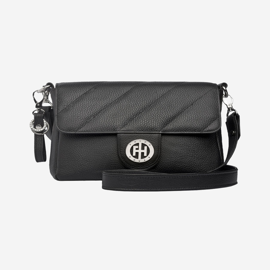 Ženska torba iz nove luksuzne FH kolekcije je izrađena od kvalitetne prirodne kože. Unutrašnjost je veoma je praktična i komotna, podeljena pregradom sa cipom. Dugačka, podesiva kožna ručka omogućava dve varijante nošenja, kao klasičnu tašnu i kao cross body. Izgled je upotpunjen metalnim medaljonom Falco House kao i kožnim privezkom za ključeve našeg brenda.