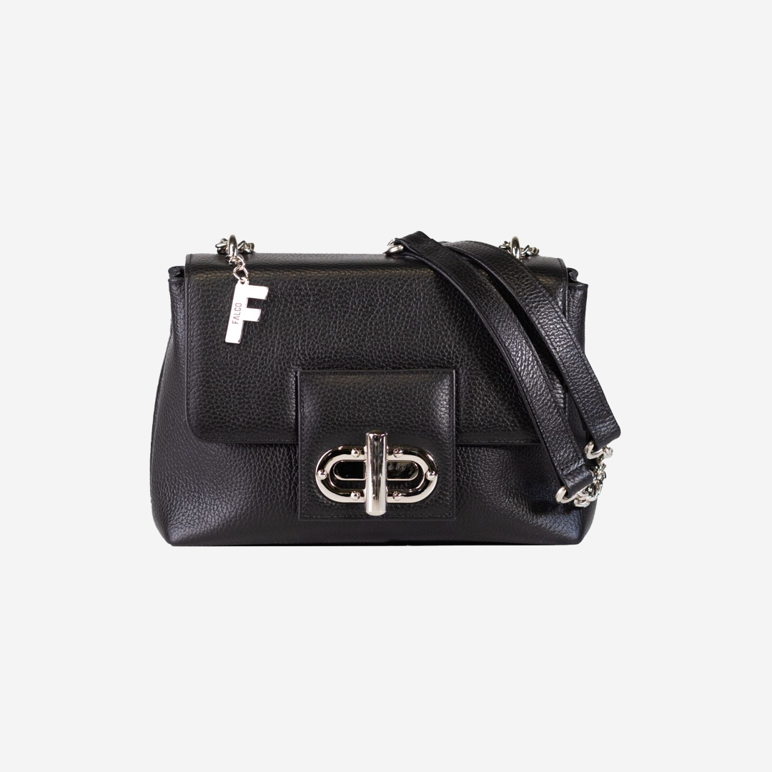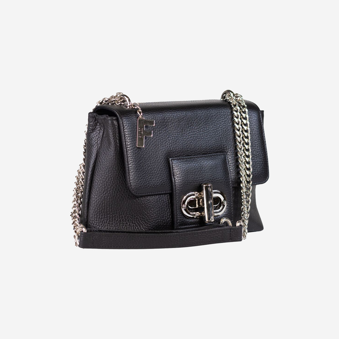 Tašna izrađena od kvalitetne prirodne kože. Veoma je praktična, sa dovoljno mesta za najosnovnije. Ima dugačak metalni lanac sa kožnim dodatkom za ugodno nošenje. Lanac je podesiv na dve veličine. Izgled tašne je upotpunjen brendiranim priveskom Falco i elegantnom bravicom.