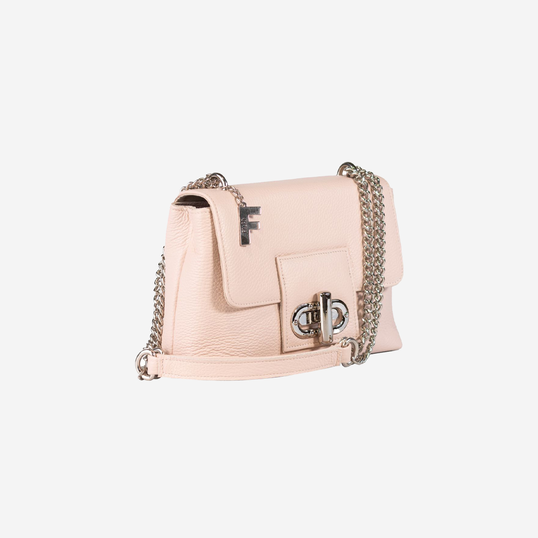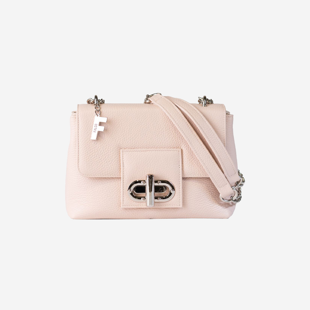 Tašna izrađena od kvalitetne prirodne kože. Veoma je praktična, sa dovoljno mesta za najosnovnije. Ima dugačak metalni lanac sa kožnim dodatkom za ugodno nošenje. Lanac je podesiv na dve veličine. Izgled tašne je upotpunjen brendiranim priveskom Falco i elegantnom bravicom.