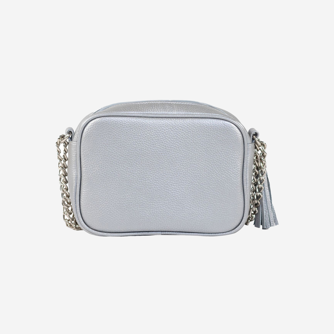 Štepana tašna izrađena od kvalitetne prirodne kože. Veoma je praktična, sa dovoljno mesta za najosnovnije. Ima dugačak metalni lanac sa kožnim dodatkom za ugodno nošenje. Lanac je podesiv na dve veličine. Izgled tašne je upotpunjen metalnom brendiranom alkom Falco.
