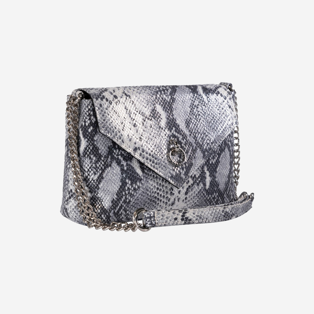Trendy ženska tašna izrađena od kvalitetne prirodne kože. Unutrašnjost je veoma je praktična sa velikom pregradom i džepom. Ima dugačak metalni lanac sa kožnim dodatkom za ugodno nošenje. Lanac je podesiv na dve veličine. Izgled tašne je upotpunjen metalnom brendiranom alkom Falco.