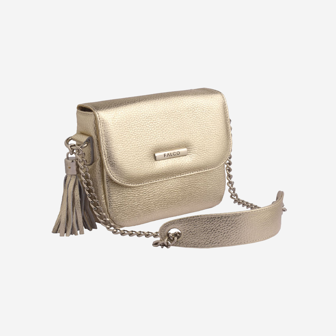 Ženska tašna izrađena od kvalitetne prirodne kože. Veoma je praktična, sa dovoljno mesta za najosnovnije. Ima dugačak metalni lanac sa kožnim dodatkom za ugodno nošenje. Izgled tašne je upotpunjen kožnom kićankom I metalnom brendiranom pločicom Falco.