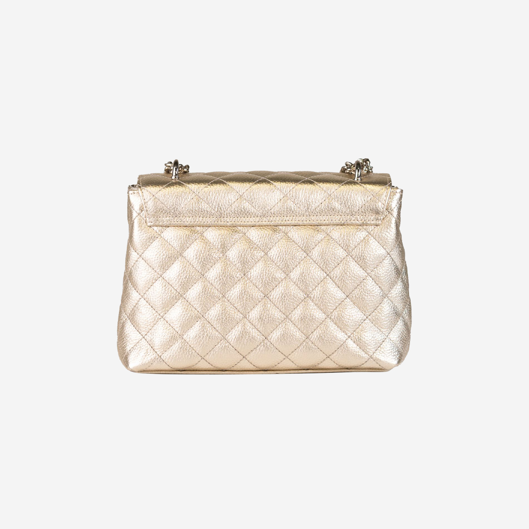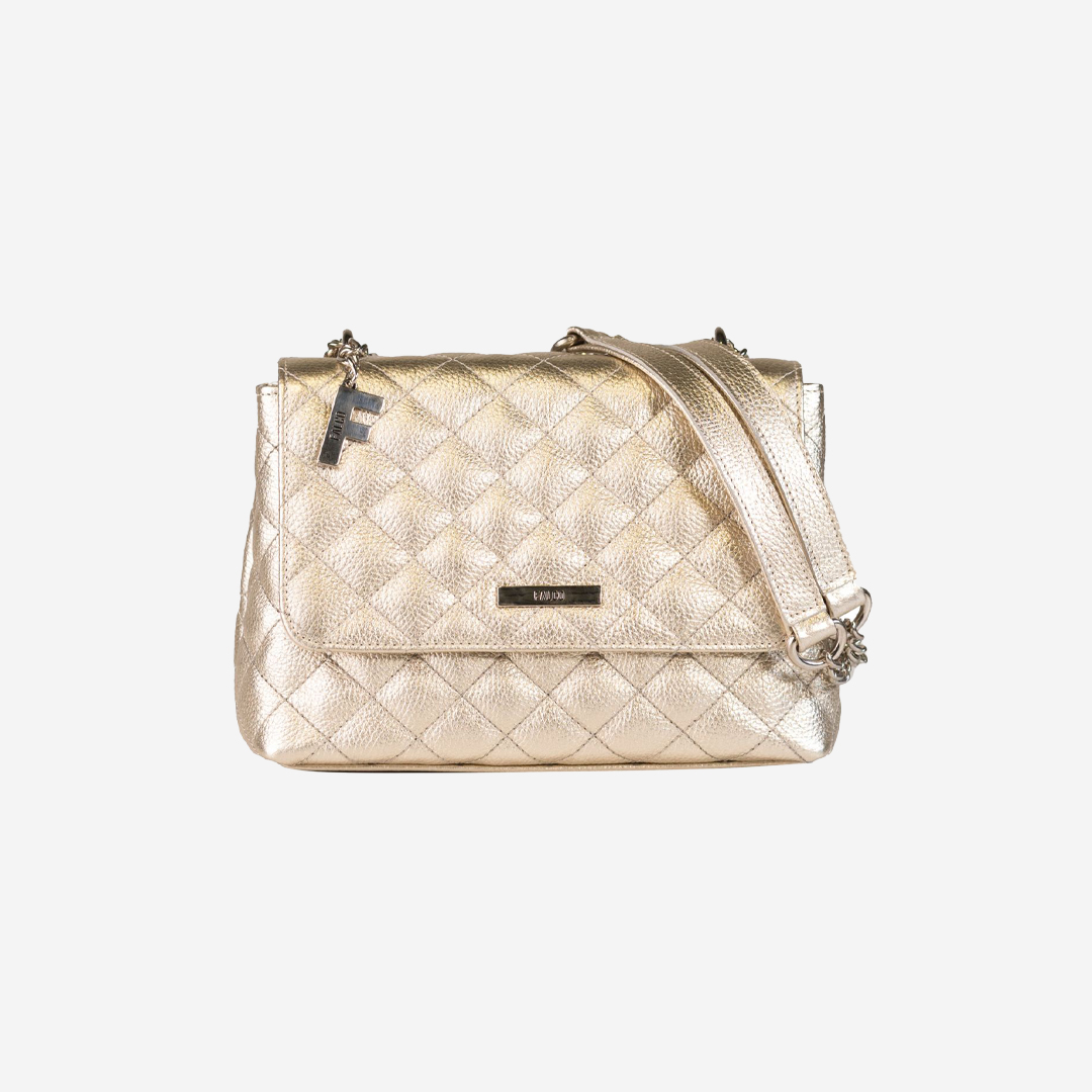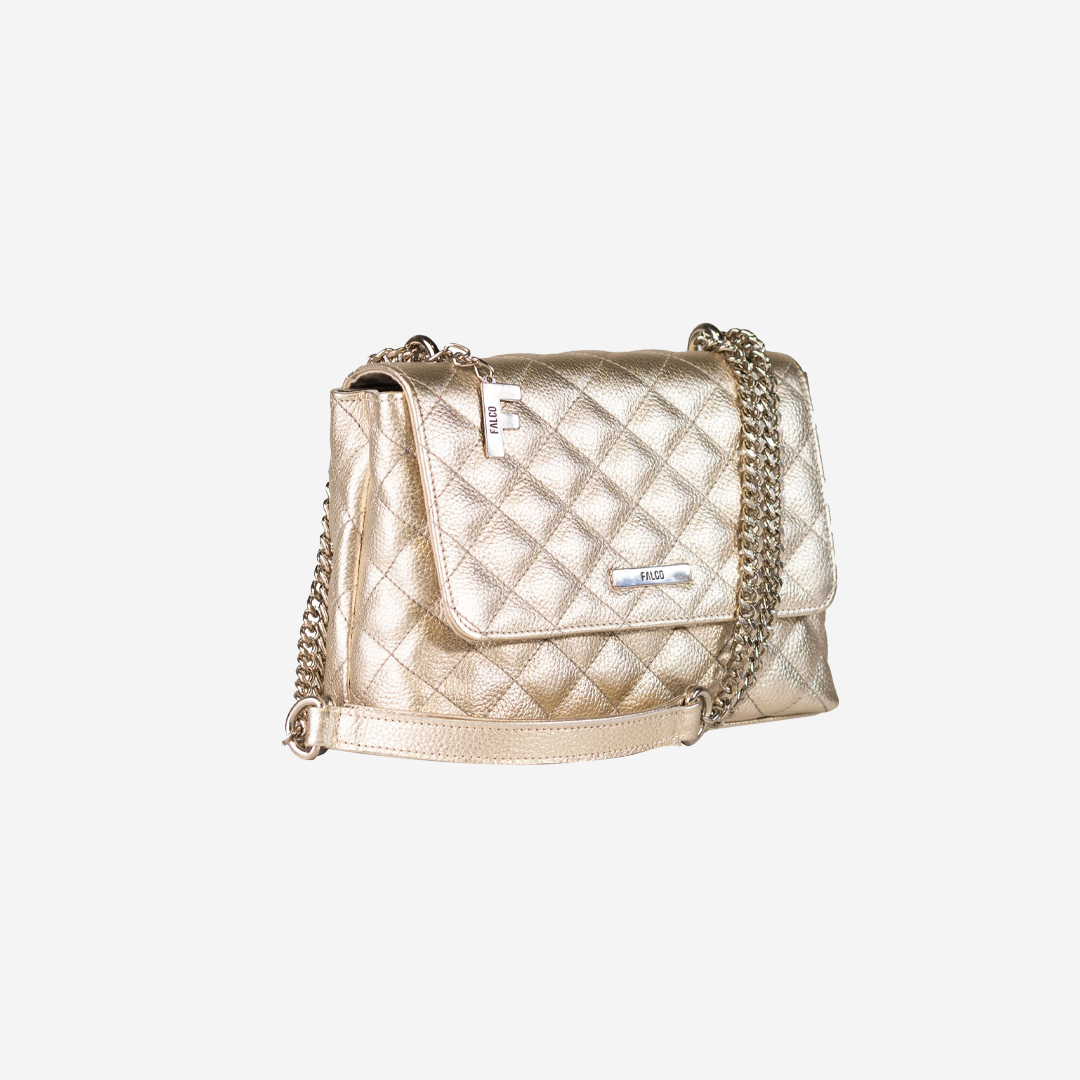 Štepana tašna izrađena od kvalitetne prirodne kože. Veoma je praktična, sa dovoljno mesta za najosnovnije. Ima dugačak metalni lanac sa kožnim dodatkom za ugodno nošenje. Lanac je podesiv na dve veličine. Izgled tašne je upotpunjen metalnom brendiranom alkom Falco.