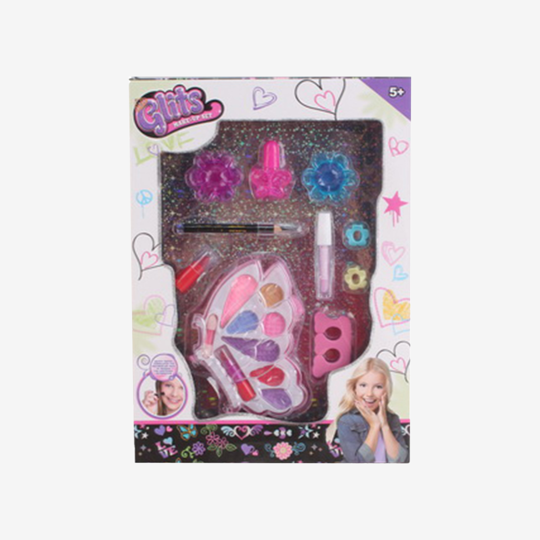 Kozmetički set u obliku leptira, osmišljen za igru i kreativnost.