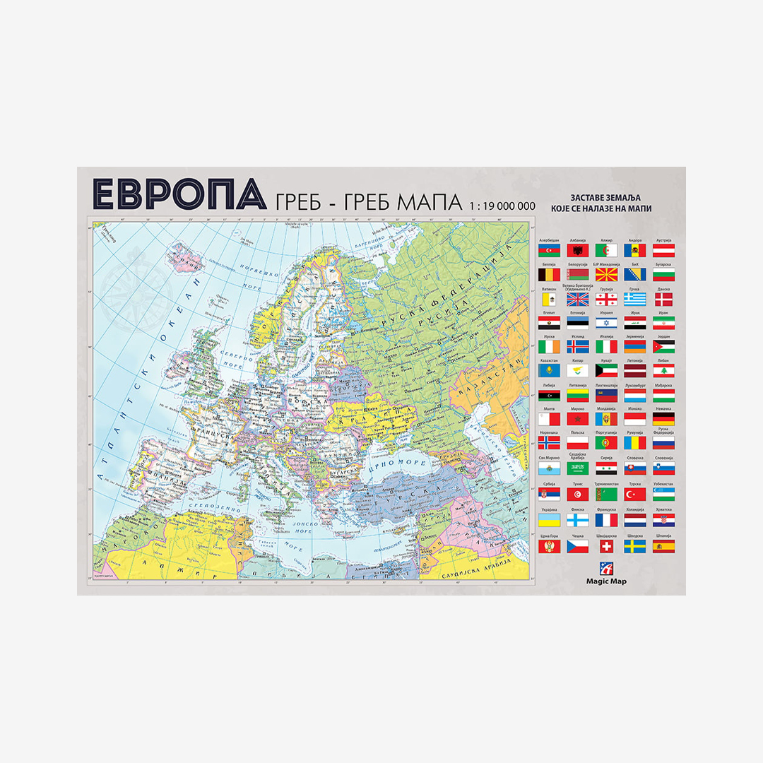 Prednja strana: Mapa Evrope sa zastavama zemalja