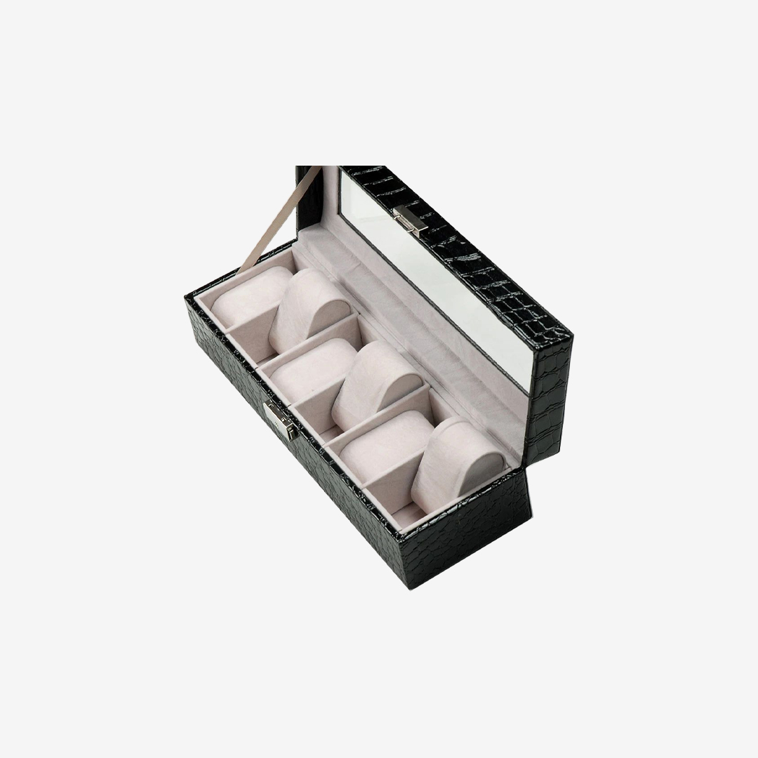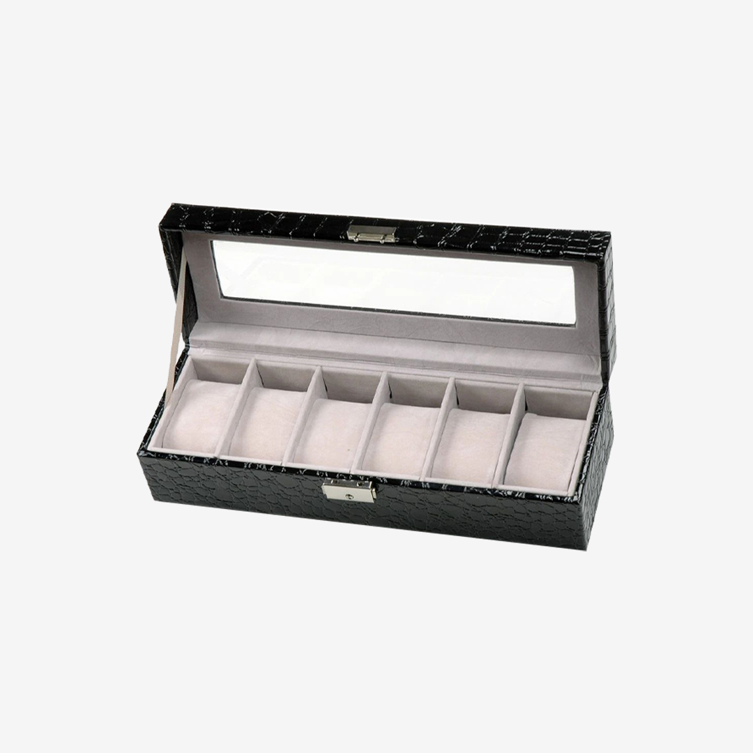 Elegantna kutija za satove modernog dizajna, idealna za čuvanje i organizaciju vaših omiljenih satova. Unutrašnjost je podeljena na više odeljaka sa mekanim jastučićima koji štite satove od ogrebotina i oštećenja, dok čvrsta spoljašnja konstrukcija obezbeđuje sigurnost i dugotrajnost. U kutiju staje 6 satova.
