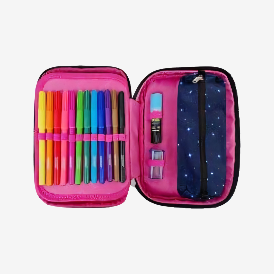 Zahvaljujući kompaktnom dizajnu sa jednim zipom, ova Target puna pernica ne zauzima puno mesta u rancu, a nudi sve što je potrebno za školu.