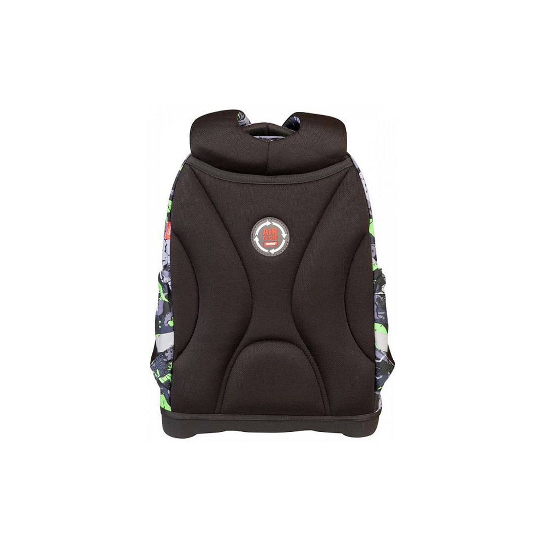 Ranac poseduje anatomsko-ergonomska čvrsta leđa obložena 3D kompozitnom mrežom, koja omogućava bolju cirkulaciju vazduha i smanjuje znojenje. Podstavljene, ergonomske naramenice doprinose pravilnom rasporedu težine i većoj udobnosti.
