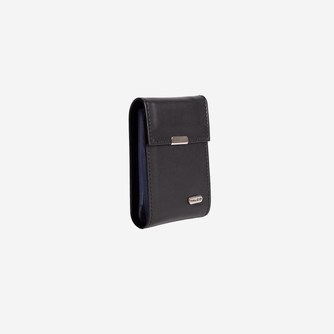 Crna futrola izrađena od kvalitetne prirodne kože. Ima 12 plastificiranih pregrada za kartice i lična dokumenta. Izgled futrole sa spoljne strane je upotpunjen metalnom pločicom Falco.