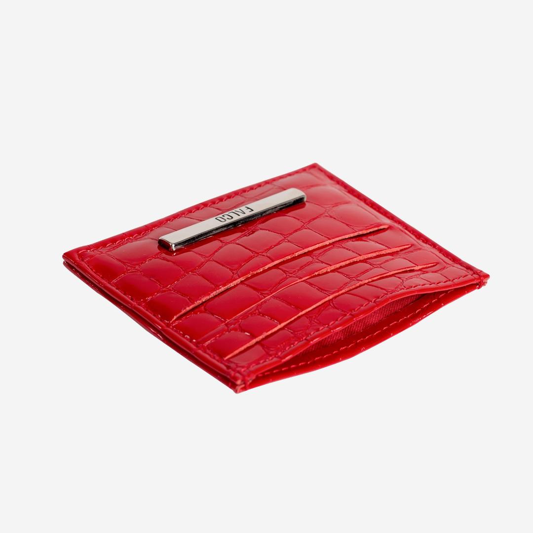 Futrola za kartice izrađena od kvalitetne prirodne kože. Ima šest pregrada za kartice i lična dokumenta, kao i veću pregradu za novac. Izgled futrole sa spoljne strane je upotpunjen metalnom pločicom Falco.