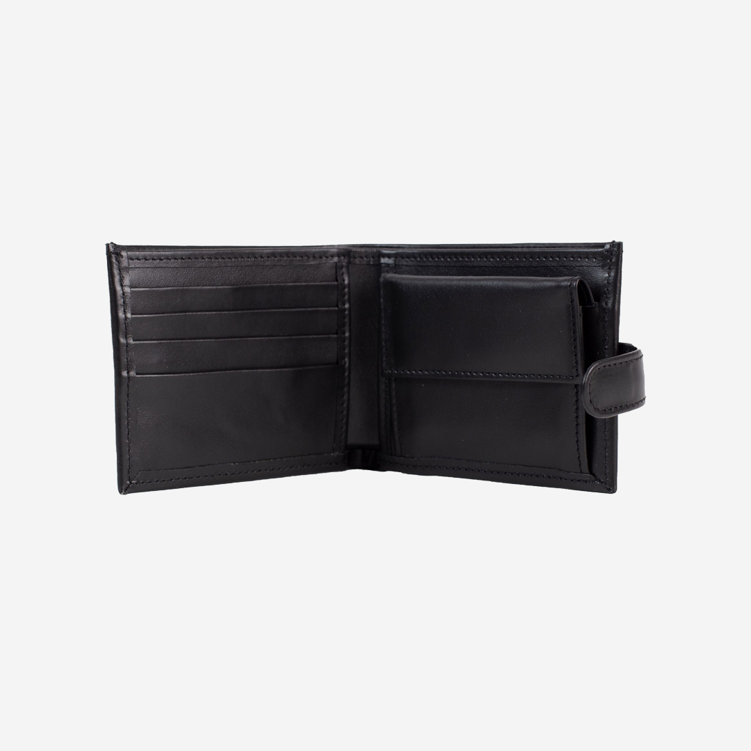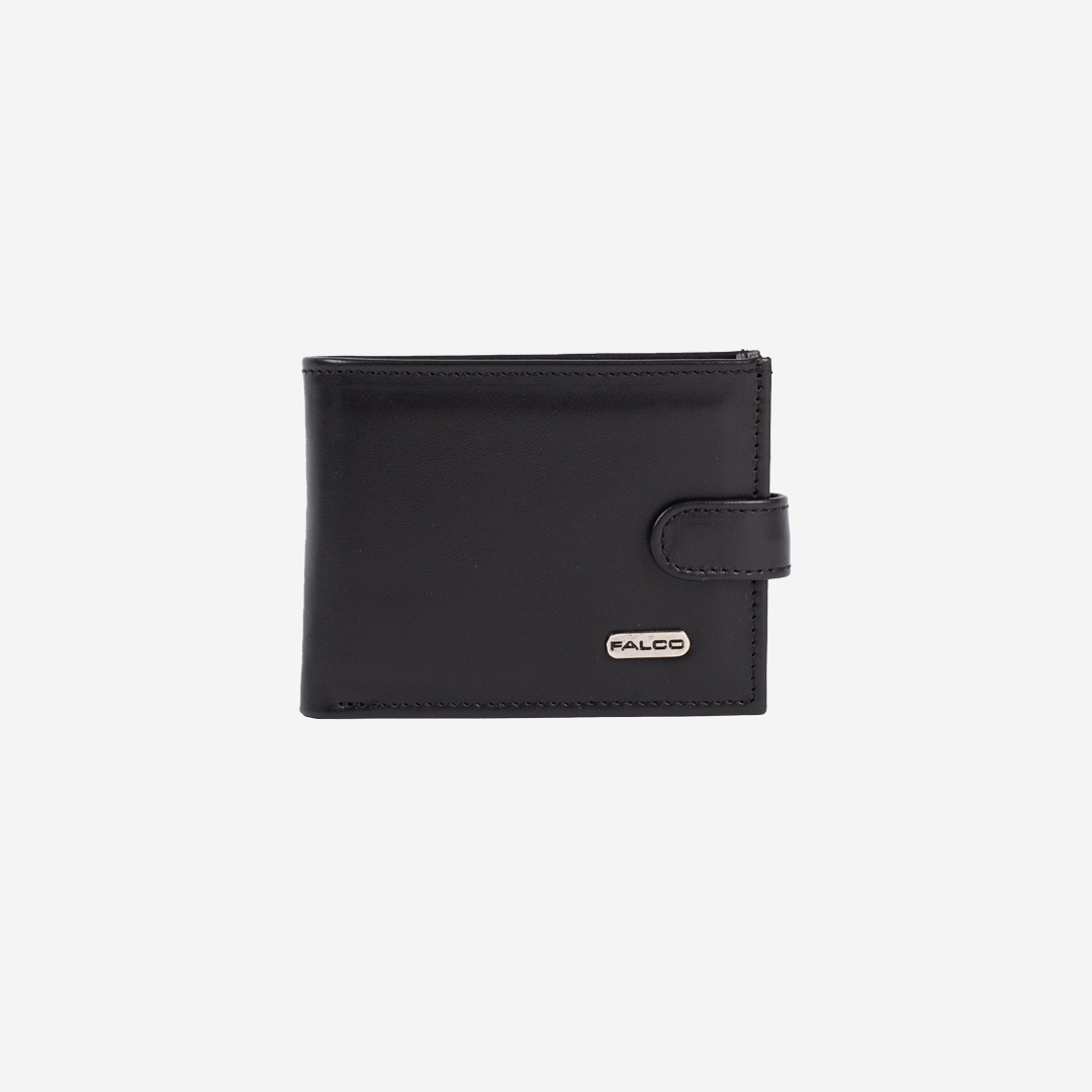 Klasičan muški novčanik je izrađen od kvalitetne prirodne kože, u crnoj boji. Ima dve velike pregrade za novac, pregrade za kartice i lična dokumenta, džep za sitan novac, kao i spoljno kopčanje. Spoljni izgled novčanika je upotpunjen metalnom pločicom Falco.