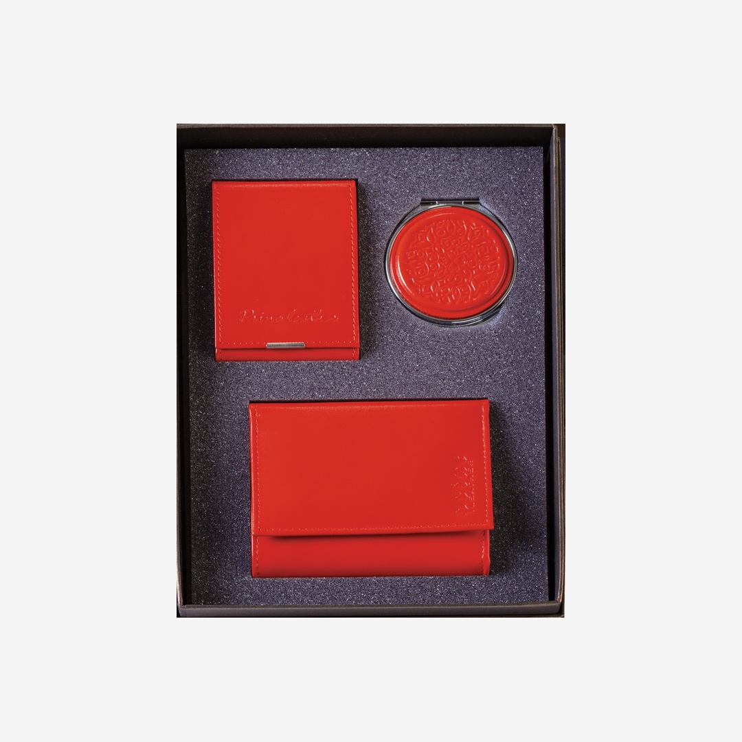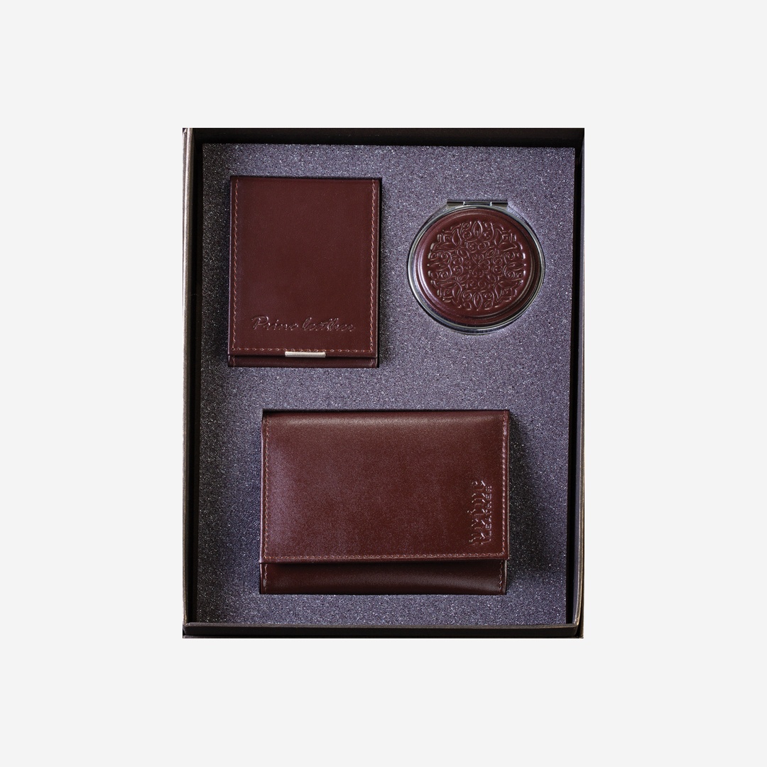 Set sadrži tri artikla izrađena od kože visokog kvaliteta i upakovana u luksuzno pakovanje.