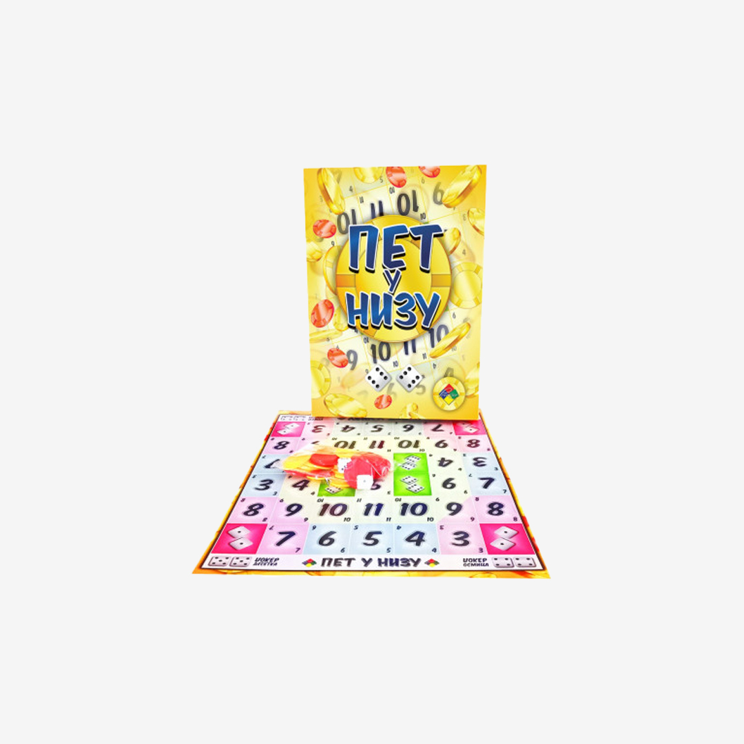Pet u nizu je društvena igra koja kombinuje sreću i strategiju, a cilj je jednostavan – prvi složi pet svojih brojeva u nizu. Igra je zanimljiva, brza i lako se uči, što je čini idealnim izborom za porodična okupljanja ili druženje sa prijateljima.